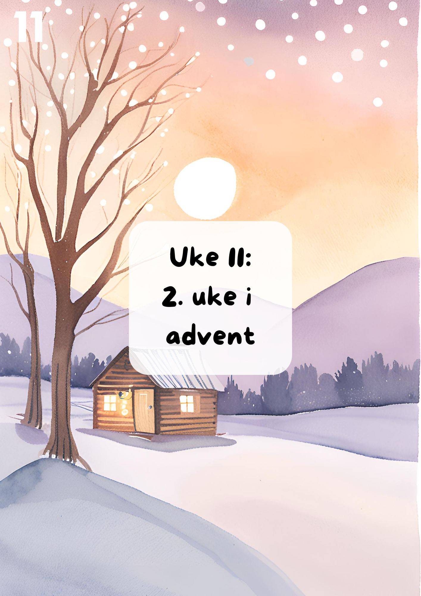 Denne historiepakken for 2. uke i advent inneholder fem vakre og hjertevarmende fortellinger som skaper en magisk stemning i førjulstiden. Gjennom historiene blir barna kjent med Hanna og Mikkel som oppdager en skatt i snøen, Marta og Elise som lyser opp landsbyen med vakre lyslykter, Jakob og Sara som hjelper dyrene i vinterkulden, Nora som lærer verdien av å gi tid som en gave, og Emma som sprer lys og glede gjennom Luciadagen.